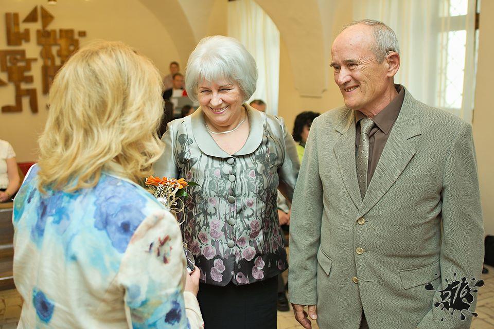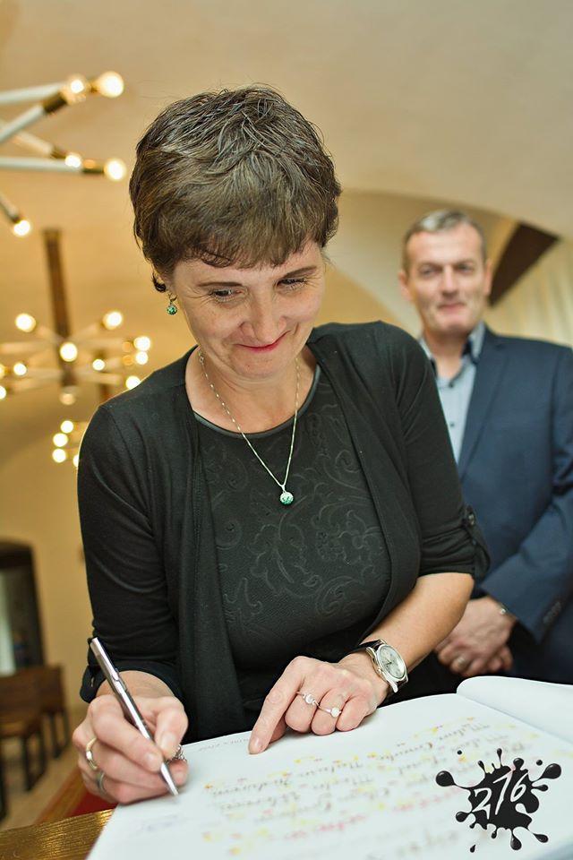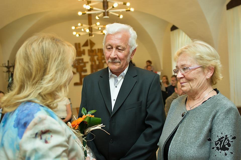Prijatie jubilujúcich manželov v obradnej miestnosti