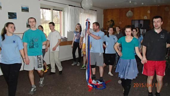 FS - Domovina pod vedením Romana Gažu a účinnej pomoci aktivistov pripravuje program . Uskutočnili sme sústredenie na chate Devín v Bojniciach, kde sme intenzívnym nácvikom zdokonaľovali prirodzený , kultivovaný hodobnopohybový prejav členov súboru. Naším cieľom je pripraviť program s ktorým vystúpime v obci na akcii "Stavanie mája ".