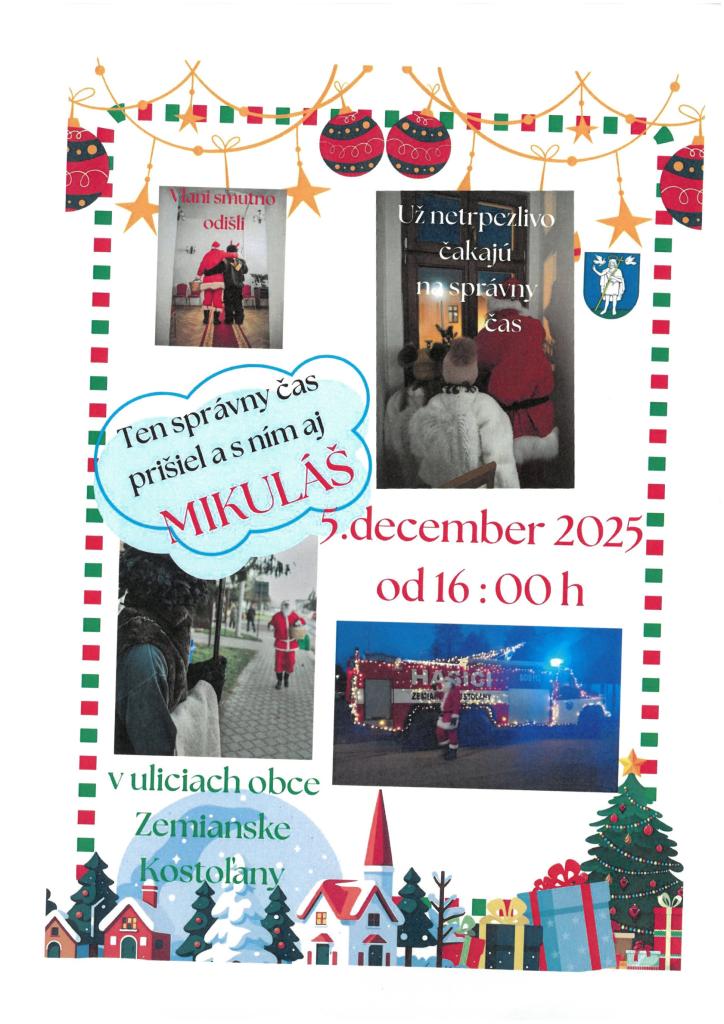 5. decembra 2025 Mikuláš s čertom a dvoma anjelikmi navštívili MŠ, ZŠ, kde rozdali deťom sladké balíčky, zastavil sa aj v Stredisku sociálnych služieb, kde potešili svojou prítomnosťou aj našich dôchodcov, žijúcich v tomto zariadení.