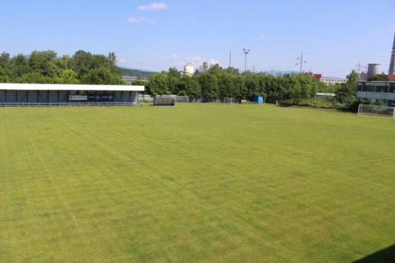 Futbalové ihrisko s automatickým zavlažovaním.