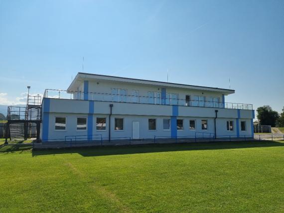 Prevádzková budova na futbalovom ihrisku (rok rekonštrukcie a prístavby 2021).